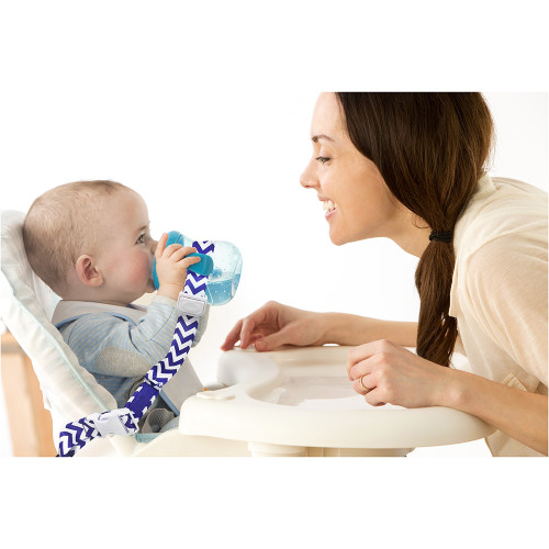 “Multi-use connector to safely tether a sippy cup, bottle, or even your favorite toy to a car seat, highchair, stroller, wheelchair or shopping cart, all while providing a sanitary and stylish design.”