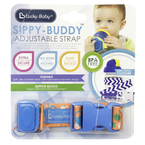 The Sippy-Buddy™ Adjustable Strap push button buckle allows you to safely, quickly and easily secure any size baby bottle, sippy cup and other baby accessories to car seats, strollers, bike seats, shopping carts, high chairs. The Sippy-Buddy™ Adjustable Strap helps keep floor germs, bacteria and dirt off your children’s items.