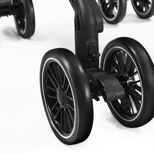 • 4-Wheel Suspension with automatic conversion system provides easy steering upon switching the handle between parent and world-facing position.