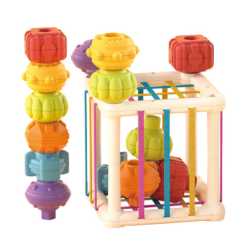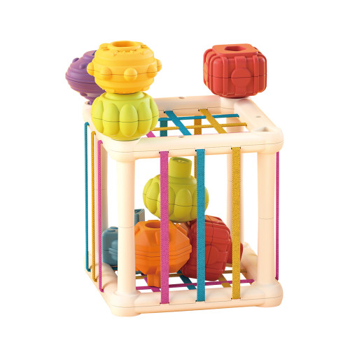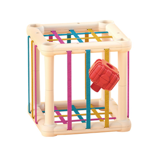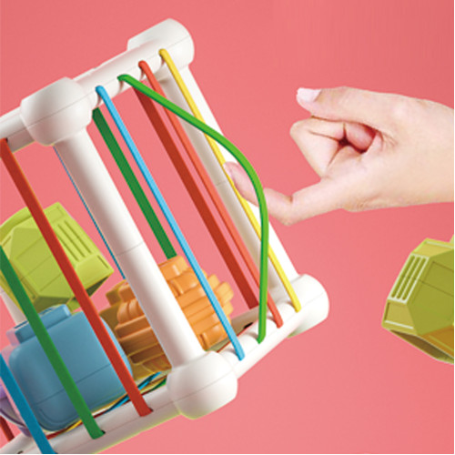 - Babies push these shapes into or take out the activity cube through elastic bands one by one. Help to improve the baby's hand-eye coordination exercise fine hand movements.