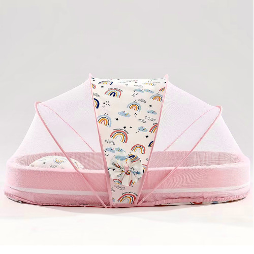 [3300P] Pop Up Portable Bed With Pillow W/Mosquito Net - Pink