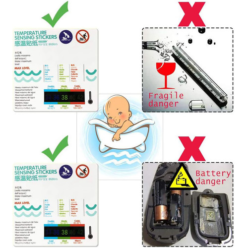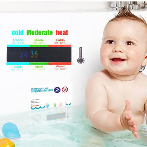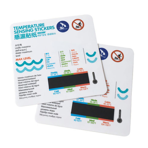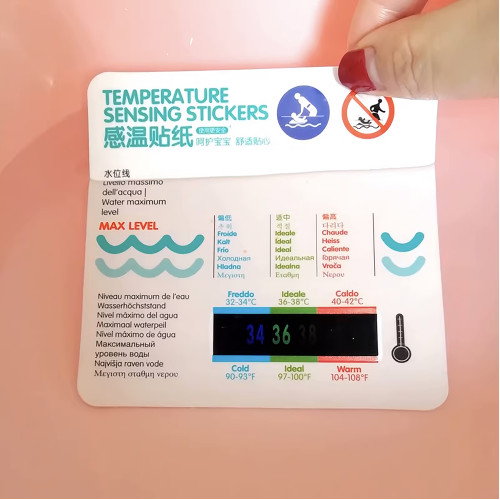 Water temperature stickers made of liquid crystal materials can provide more scientific, safe and accurate data. Water temperature stickers are immersed in water for more than 15 seconds to reach the green area. The water temperature is suitable.