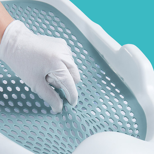 It makes bath time safe and simple. Designed to be used through growth, this innovative collapsible bathtub support seat offers baby a comfortable place to recline, relax and enjoy - and it offers parents peace of mind knowing that baby is secure. The soft 'jelly' rubber sling cradles your little one comfortably while the perforated soft-touch surface allows the water to keep your little one at the ideal temperature, also allowing excess soap bubbles to be rinsed away easily. This brilliant support can be positioned in any baby or adult-sized bathtub, giving your little one a safe place to relax whilst keeping your hands free to do the important work of keeping your child clean! The support seat is ergonomically designed and has non-slip qualities, and when bathtime is over, you can simply remove from the tub, fold the leg so the seat is compact, and then store away until next time. You can hang it up out of the way – what a space-saving design!