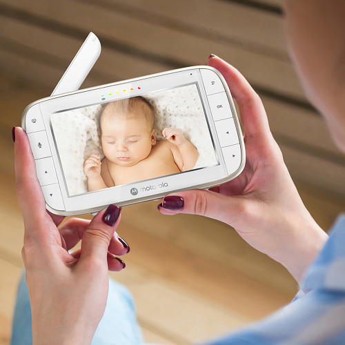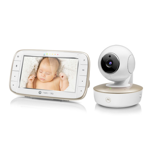 Motorola VM855 Connect includes a 5" screen and a portable, battery-powered camera with remote pan, tilt & zoom and night vision that connects to the Motorola Nursery app to enable HD (720p) video to stay connected to what’s going on at home. Take the camera with you around the home to watch your little one wherever they are.