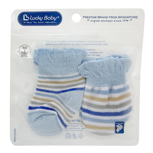 [910207] New Born Knitted Mitten & Bootees Set - Blue Strip