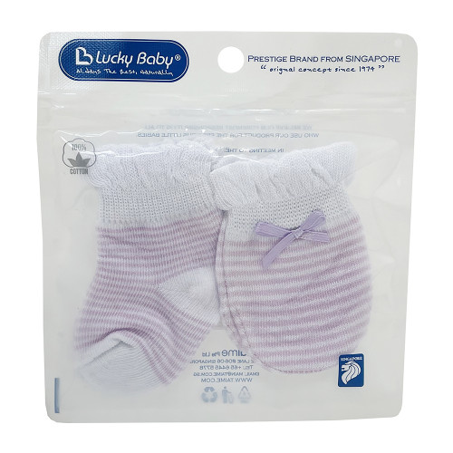 [910221] New Born Knitted Mitten & Bootees Set - Strip Purple