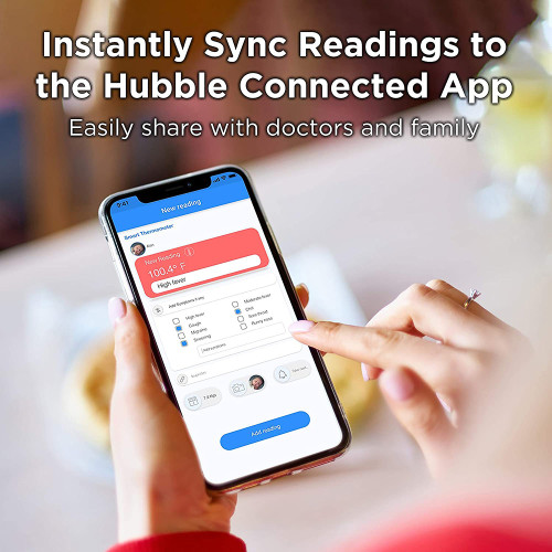 - Have an easier time tracking your baby’s body temperature over a period of time with the downloadable Hubble Connected app. Sync readings and share measurements in real-time with your family or physician on your compatible device.