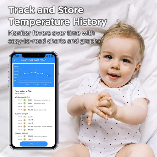 - Keep a close watch on your baby’s body temperature and easily monitor the course of the fever. Track and store temperature history on your smart device, and monitor fever readings with easy-to-read charts and graphs.