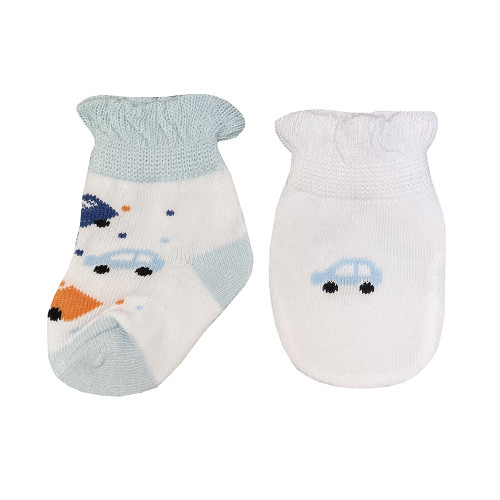 [910306] New Born Knitted Mitten & Bootees Set - Car