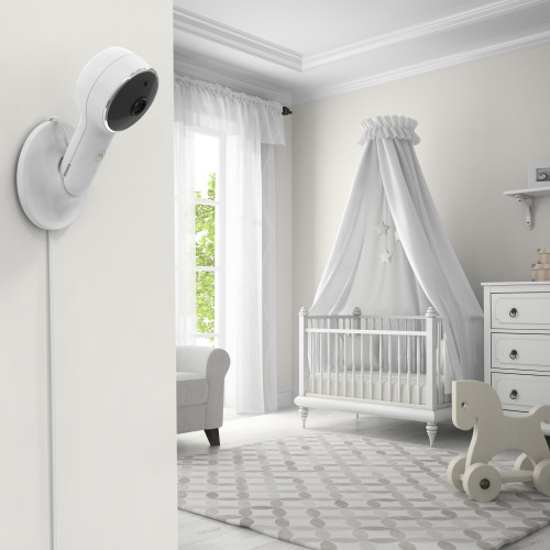 - Place your camera anywhere with the magnetic mount for a better view of your little one. It easily attaches to shelves, brackets, and more.