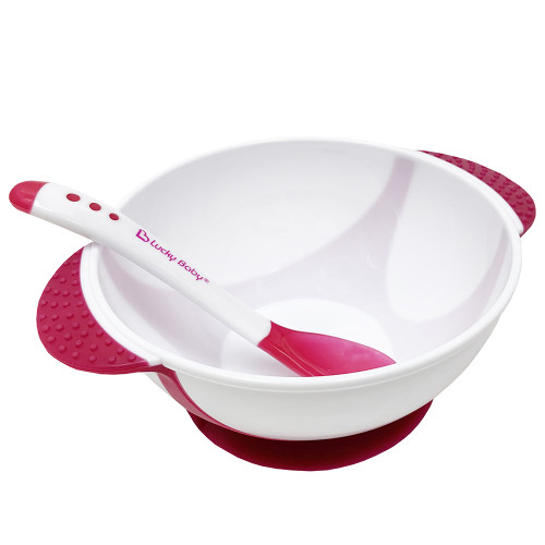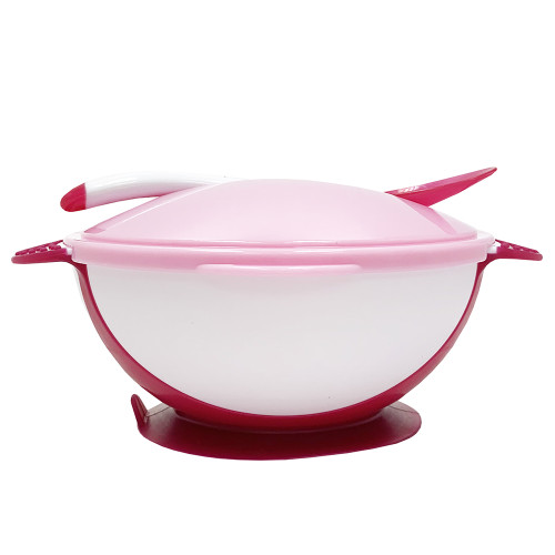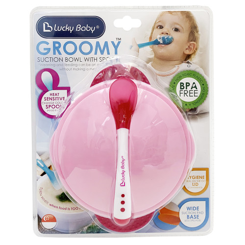 [609705] Groomy Suction Bowl with Heat Sensitive Spoon - Pink