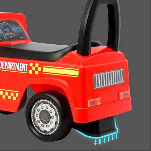 - Featuring a cool Mercedes-Benz licensed model design, this kid's ride-on car includes a steering wheel, dashboard and alarm light to give your child an authentic driving experience. In addition, the bright red color and fire truck decal print not only enhance the visual appeal, but also encourage imaginative play.
