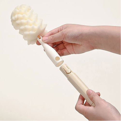 - Premium Spongy Brush: The main brush features soft yet firm spongy that effectively remove milk residue and build up from bottles which minimizes scratch risk. Its long, ergonomic handle allows a comfortable grip and easy reach inside deep bottles.