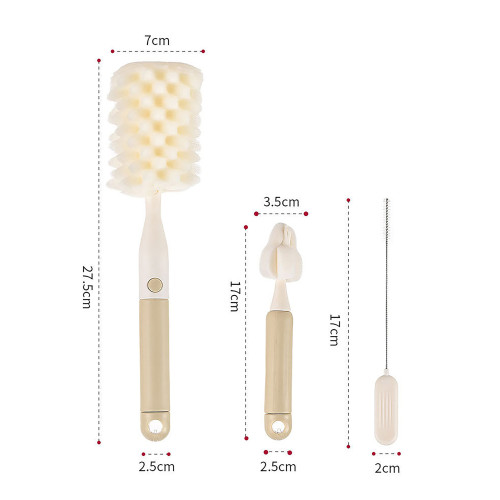- Nipple Brush: Specially designed to clean baby bottle nipples, pacifiers, and small bottle parts. The compact head fits into tight spaces and helps remove stubborn residue while maintaining the integrity of the material.