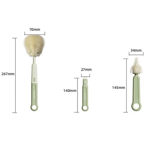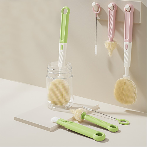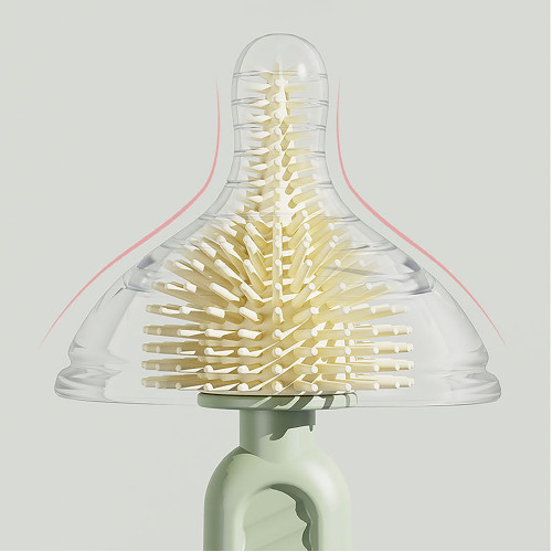 - Nipple Brush: Specially designed to clean baby bottle nipples, pacifiers, and small bottle parts. The compact head fits into tight spaces and helps remove stubborn residue while maintaining the integrity of the material.