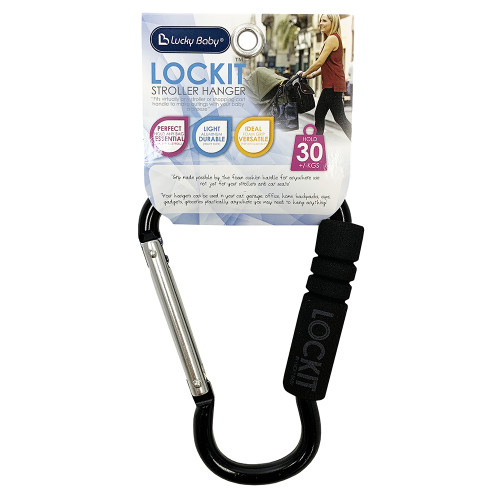 Lockit™ Stroller Hanger is the perfect stroller hanger. Built to last, lightweight and versatile, it fits virtually all stroller handles. It is made from durable, heavy-duty aluminum for better durability. Its rubber guide keeps it from slipping or sliding. Perfect on your stroller and shopping cart. Just snap it on and you're ready to stroll away! It easily holds diaper bags, shopping bags, camera bags, groceries, purses, clothes, toys, sports gear, and much more! It's even handy for taking bags from your car to your home.
