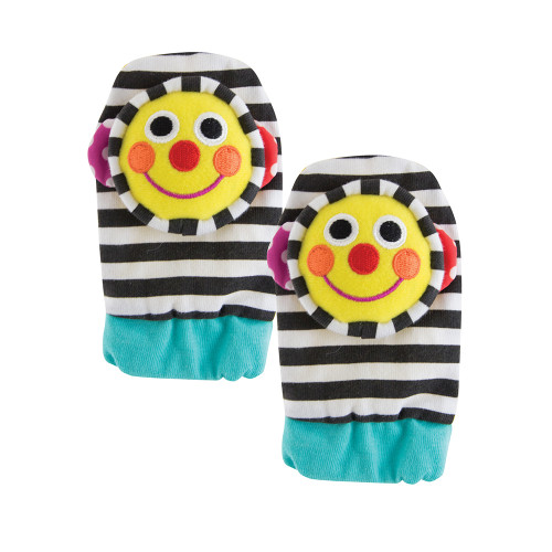 Milestones: Baby is busy observing and exploring the world around him. He is learning that he has a reflection of his own and that all objects won’t disappear if he puts them down for a minute or a few days. Cause-and-effect is a key function that baby is learning: That there is a reaction to batting at a spinning wheel, and he is the one that caused it.